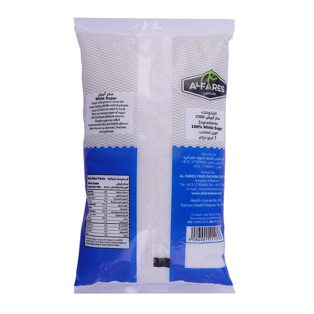- Convenient packaging for easy storage and use Elevate your dishes with the finest quality white sugar from Al Fares.