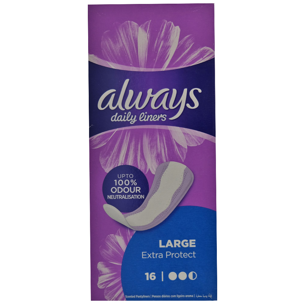 Upgrade your daily protection with Always Large Pads Daily Liners in this exclusive 16s pack. Stay comfortable and confident all day long with these high-quality liners.