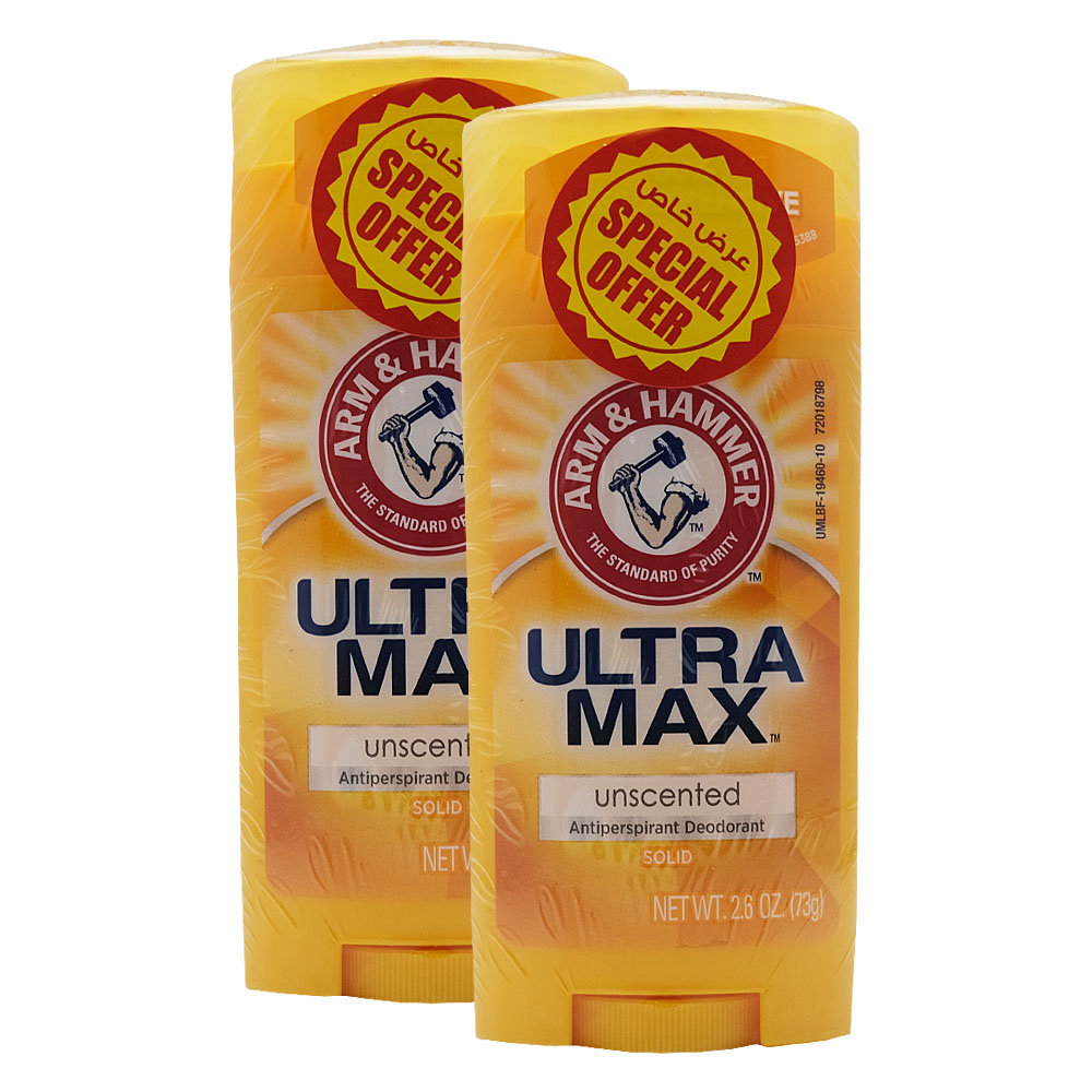 Stay fresh and confident all day with Arm & Hammer Unscented Ultra Max Deodorant. This pack includes two 73g sticks, ensuring long-lasting protection. The unscented formula is gentle on skin, making it suitable for all skin types.
