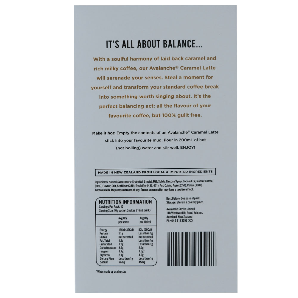Indulge in the rich and creamy taste of Avalanche 99% Sugar Free Caramel Latte. Made with premium ingredients, this decadent drink is perfect for satisfying your cravings without the guilt. Just add hot water for a convenient and delicious treat anytime, anywhere.