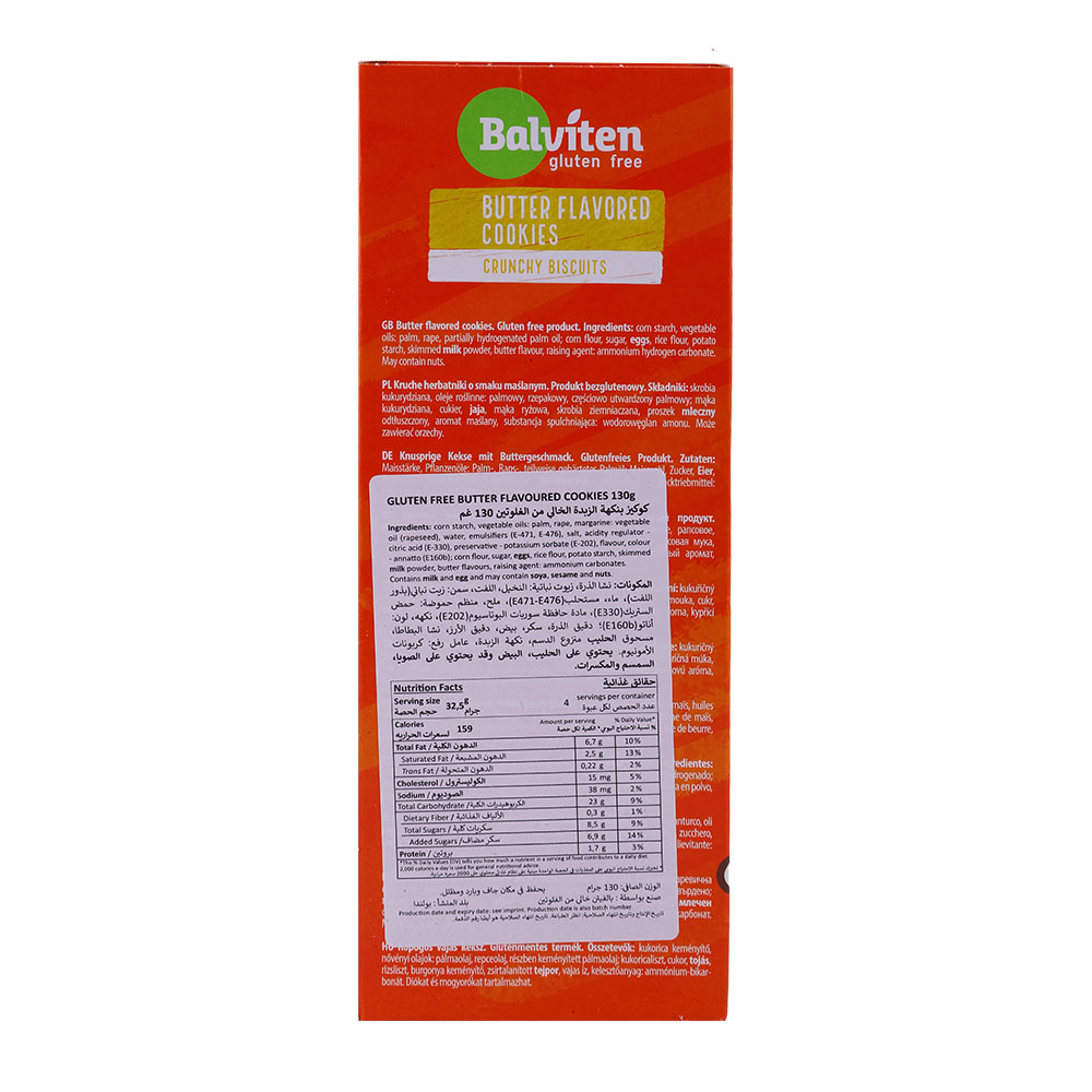 Indulge in the delicious taste of Balviten Gluten-Free Butter Flavoured Cookies. Made with care and attention to quality, these cookies are a delightful treat for any time of the day. Each bite is rich, buttery, and sure to satisfy your cravings.