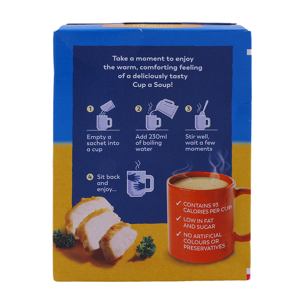 Indulge in the comforting and savory taste of Batchelors Cup a Soup Chicken. Just add hot water for a quick and delicious meal or snack anytime, anywhere.