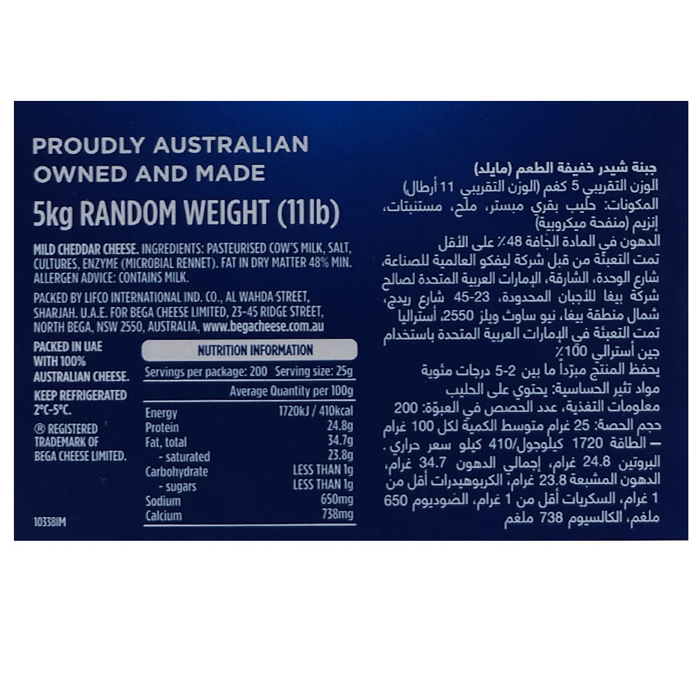 Indulge in the creamy and smooth taste of Bega Mild Cheddar Cheese, perfect for any cheese lover's cravings. Sourced from high-quality ingredients, this cheese is sure to elevate your snacking and cooking experience.
