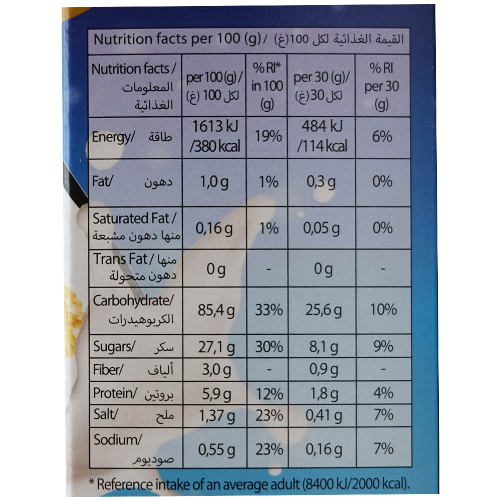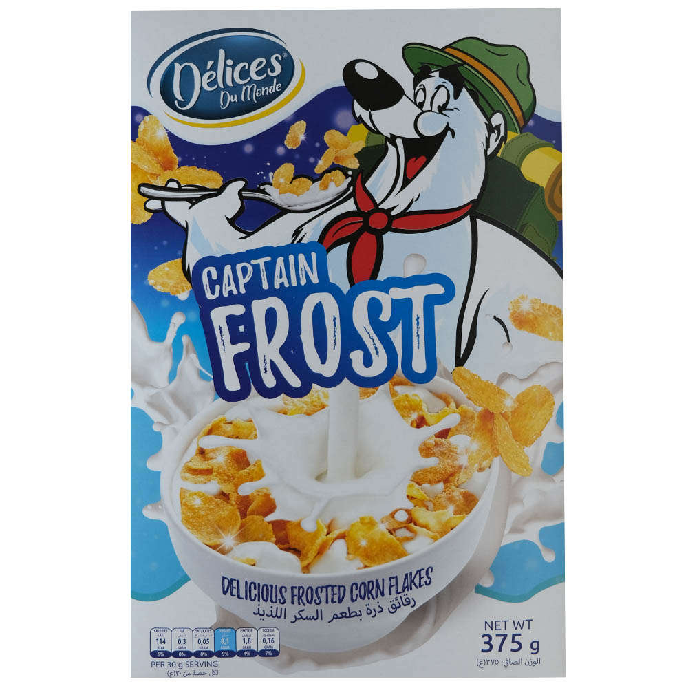 Start your day with a bowl of Delices Captain Frost Corn Flakes, a delicious and crispy cereal that will surely satisfy your breakfast cravings. Made from high-quality ingredients, this 375g pack is perfect for the whole family to enjoy.