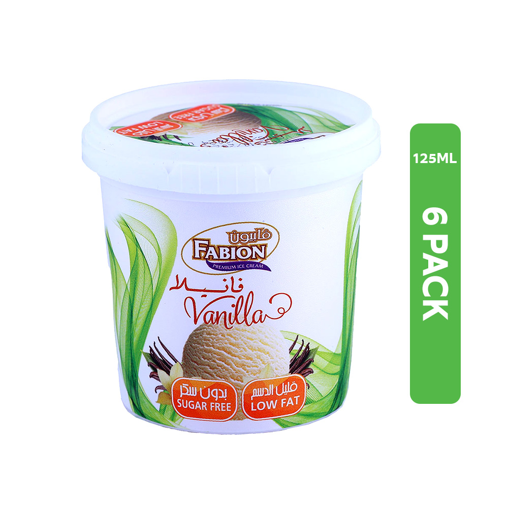 Satisfy your sweet cravings guilt-free with Fabion Vanilla Sugar-Free & Low Fat Ice Cream. Indulge in the creamy vanilla flavor without the added sugar. Each pack contains 6 convenient 125ml servings of delicious frozen treat. Treat yourself to a delightful frozen dessert without the guilt. Enjoy the creamy texture and rich vanilla taste without worrying about added sugar. Perfect for portion control with 6 individual servings per pack.