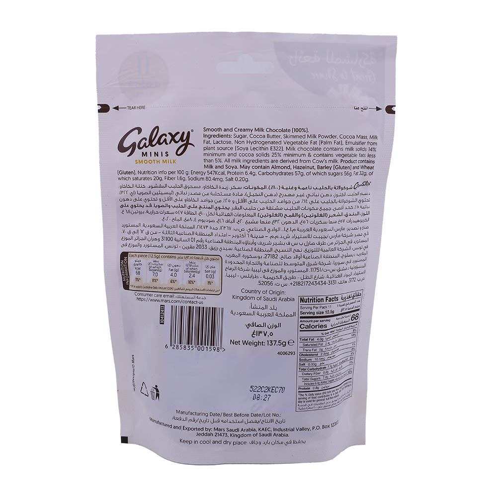 Indulge in the delightful Galaxy Minis Chocolate, each bite-sized piece is packed with rich, smooth chocolatey goodness. Perfect for satisfying your sweet cravings anytime, anywhere.