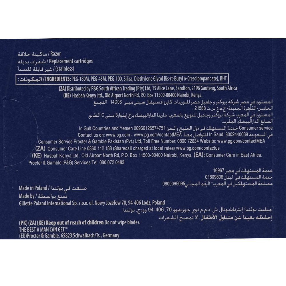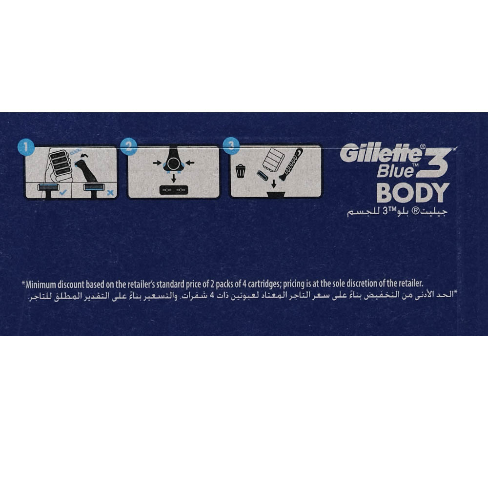 Experience a smooth and comfortable shave with the Gillette Blue 3 Body Cartridge Razor.