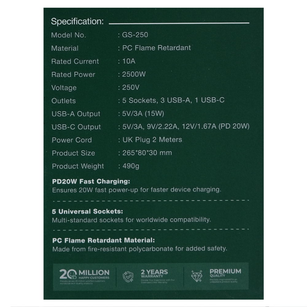 - Built-in safety features to protect against overloading and short circuits Upgrade your power distribution with the Green Lion GS-250 Power Socket, the perfect solution for your electronic devices.