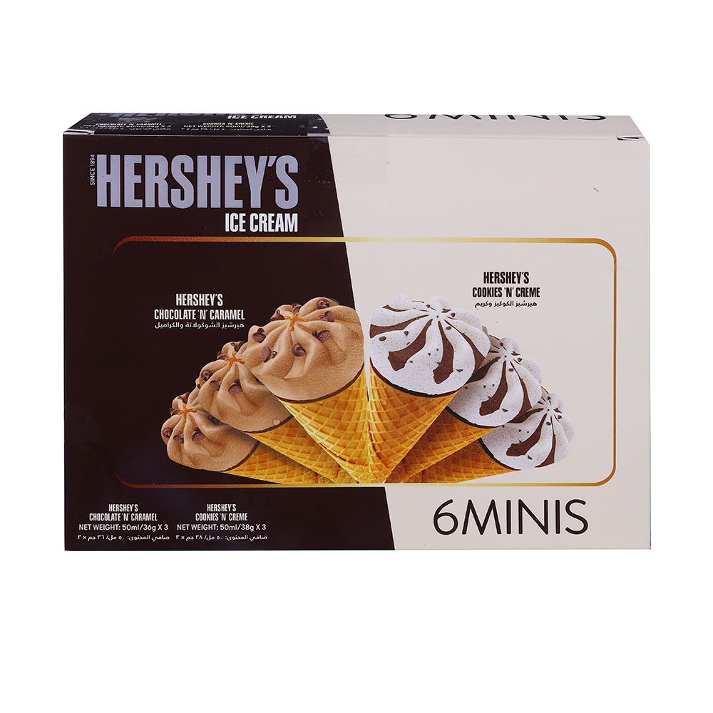 Enjoy a delightful treat with Hershey's Assorted Mini Ice Cream Cones. Indulge in a variety of flavors in convenient mini sizes perfect for snacking on-the-go. Each cone is filled with creamy ice cream and topped with a delicious chocolate coating.