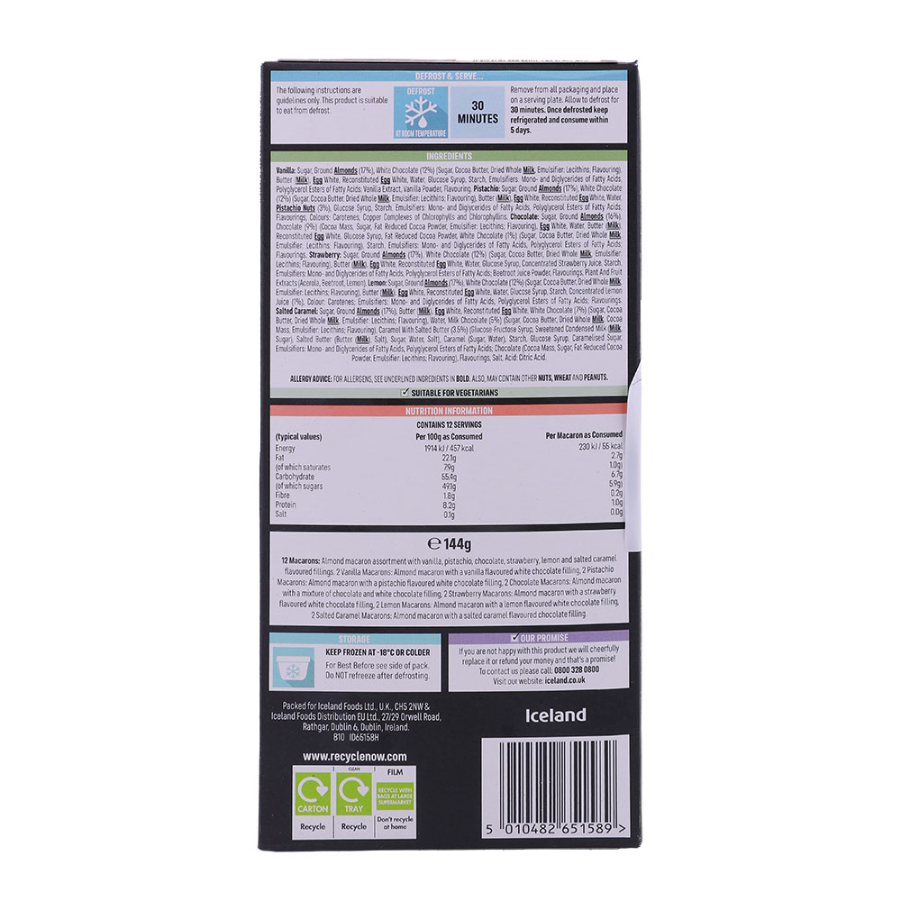 Indulge in the delightful flavors of Iceland Macarons, a heavenly treat perfect for any occasion. Each box contains 12 delicious macarons, with a variety of flavors to satisfy your sweet cravings. Made with high-quality ingredients, these macarons are sure to impress your taste buds.