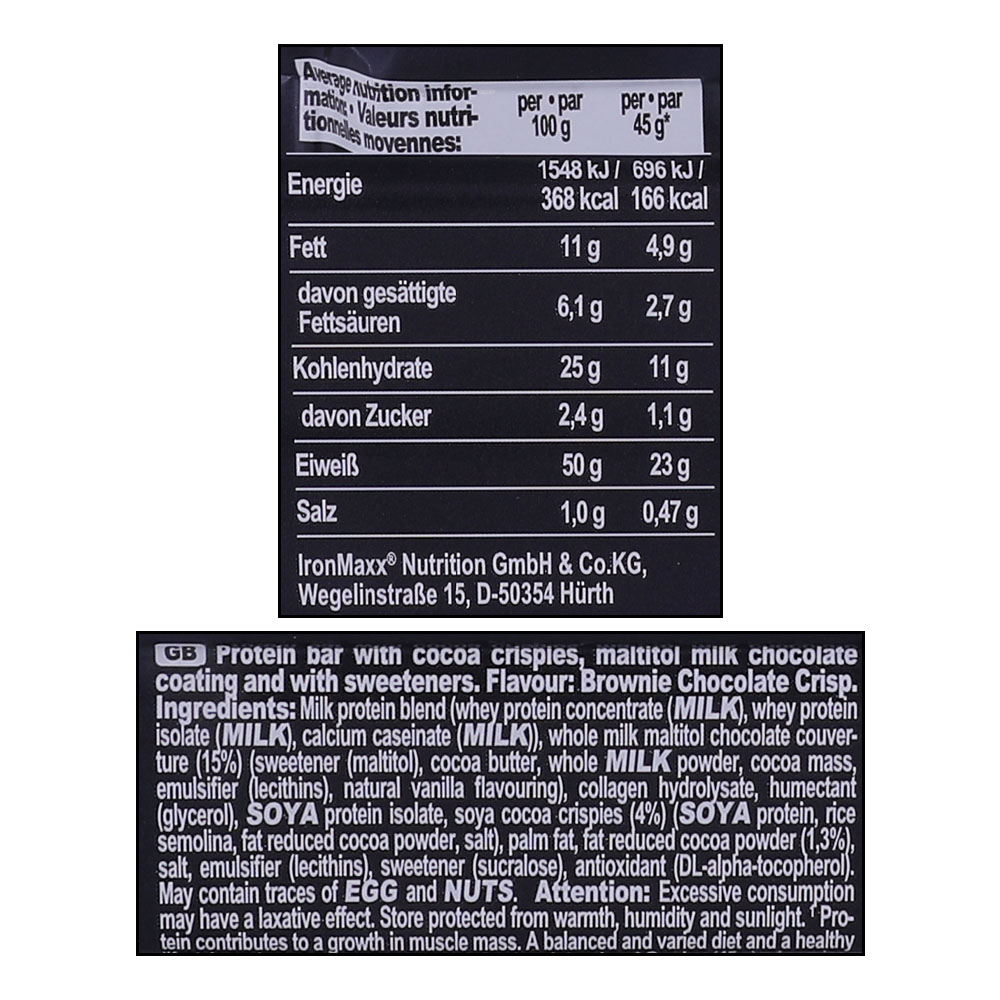 Ironmaxx Zenith 50 Brownie Chocolate Chip Protein Bar 45g
