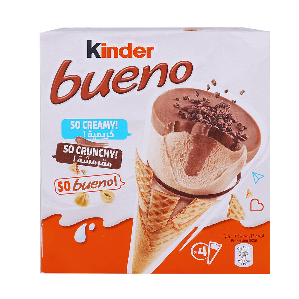 Experience the delicious combination of crispy cone, creamy hazelnut ice cream, and smooth milk chocolate with Kinder Bueno Ice Cream Cones. Indulge in this delightful treat that is perfect for satisfying your sweet cravings.