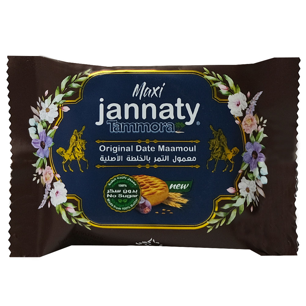 Indulge in the rich and traditional flavors of Maxi Jannaty Tammora Original Date Maamoul. This 50g delicate pastry is filled with succulent dates, perfect for satisfying your sweet cravings.