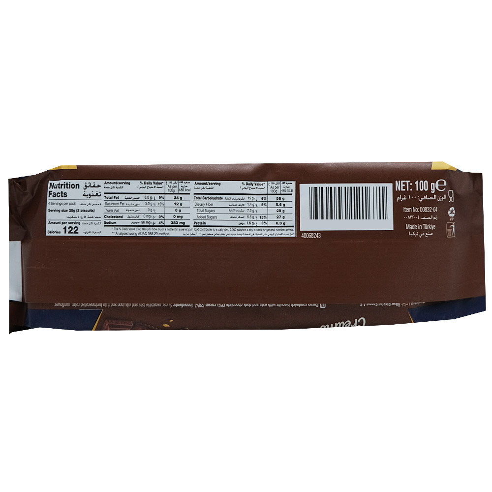 - Crispy whole grain biscuits paired with luscious chocolate cream