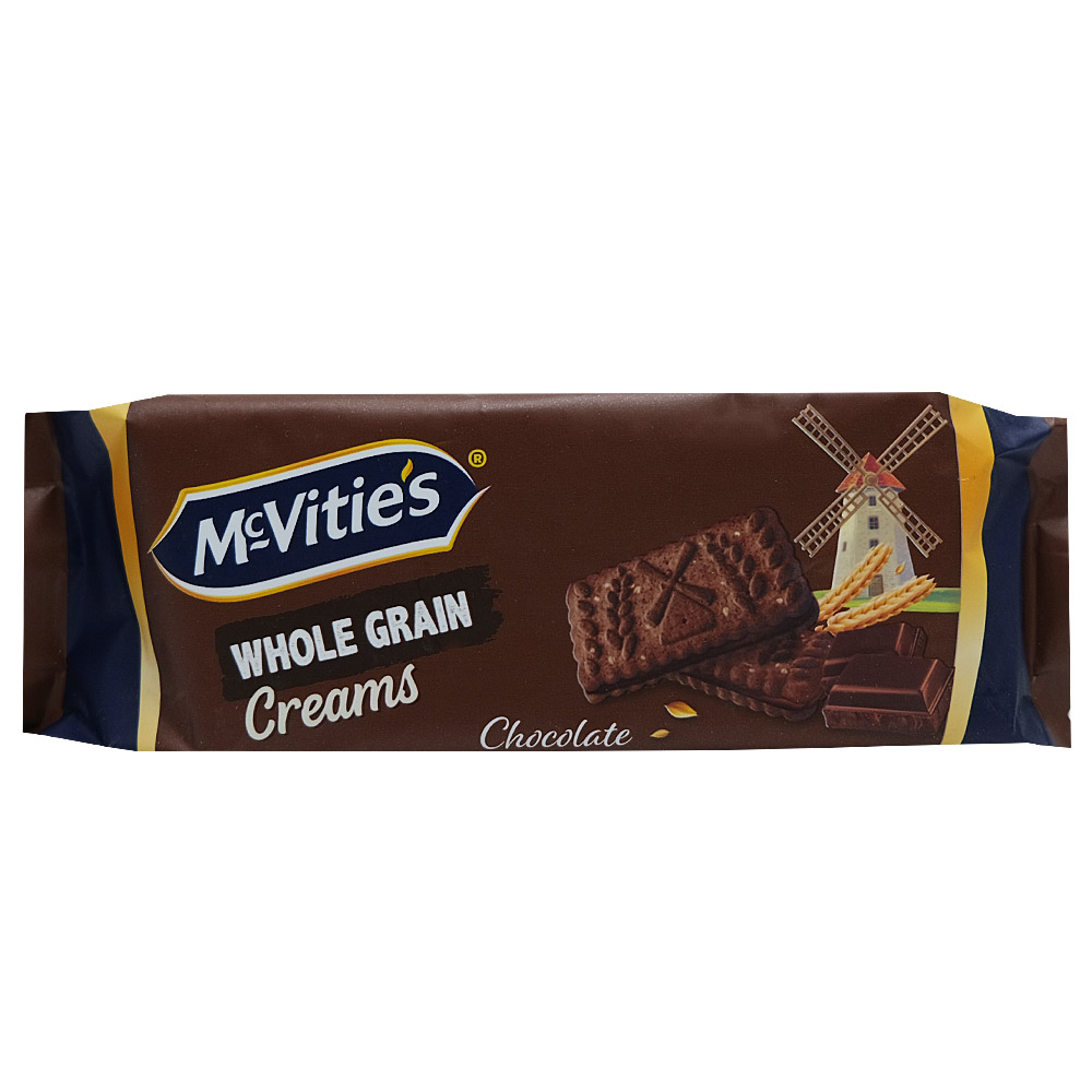 Indulge in the delectable combination of whole grain biscuits and rich chocolate cream with McVitie's Whole Grain Creams Chocolate Biscuits. Each bite offers a satisfying crunch and creamy center that will leave you craving for more.