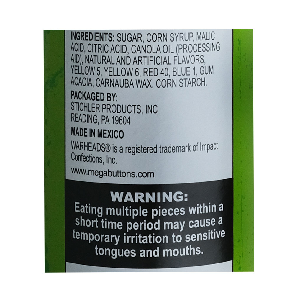 Get ready for a flavor explosion with Mega Candy Warheads Giant Tube! This 396g tube is packed with intensely sour and sweet candies that will tantalize your taste buds. Perfect for sharing or enjoying on your own, this tube is filled with a variety of fruity flavors that will keep you coming back for more.