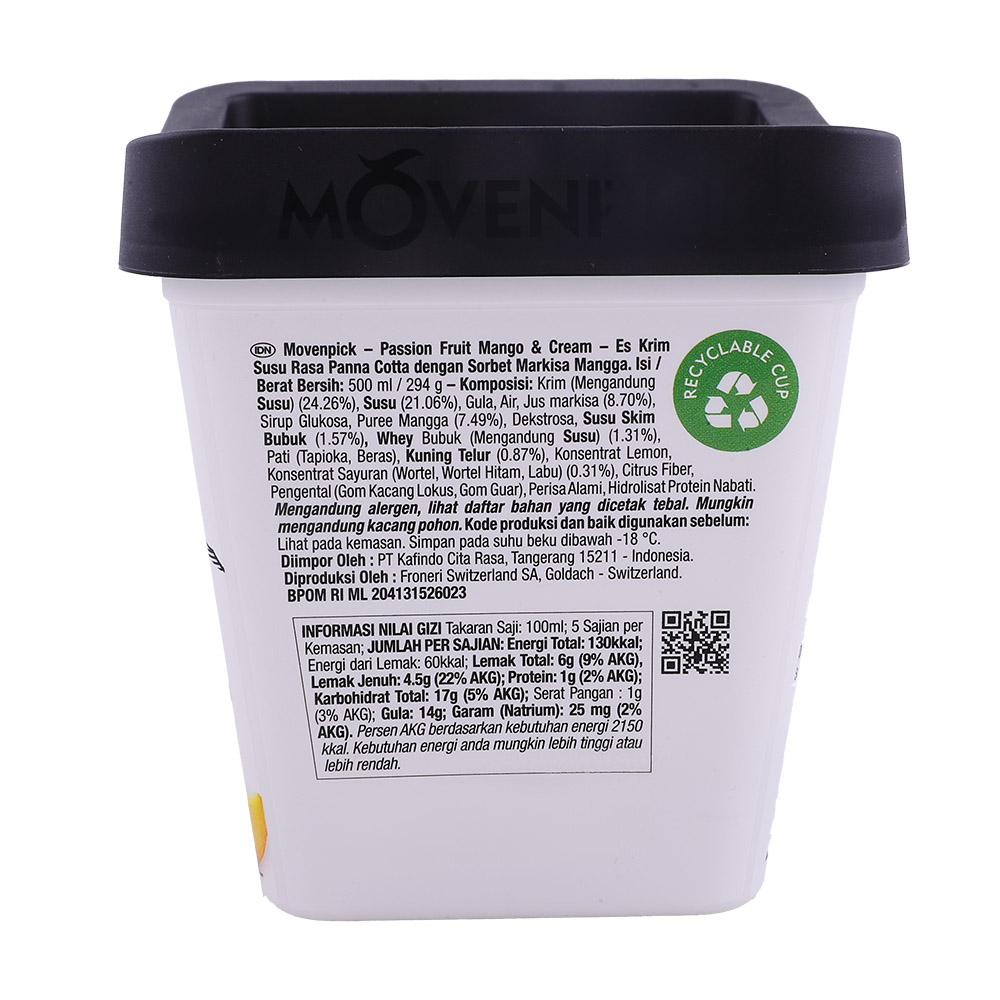 - Perfect dessert option for a tropical escape at home Treat yourself to a scoop of Movenpick Passionfruit Mango & Cream Ice Cream and experience a taste of paradise in every bite.