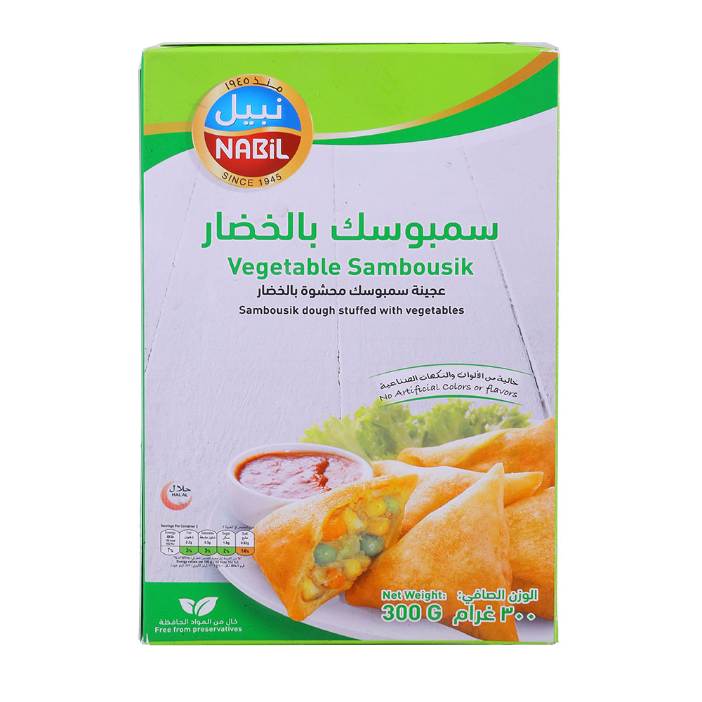 Indulge in the savory flavor of Nabil Vegetable Sambousik, a delightful treat bursting with a medley of fresh vegetables. These crispy pastries are perfect for snacking or as a tantalizing appetizer for any occasion.