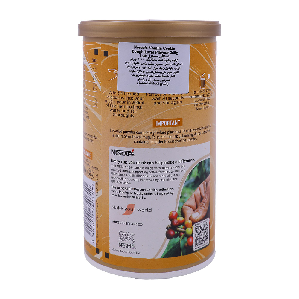 Nescafe Vanilla Cookie Dough Latte Flavour Coffee 260g