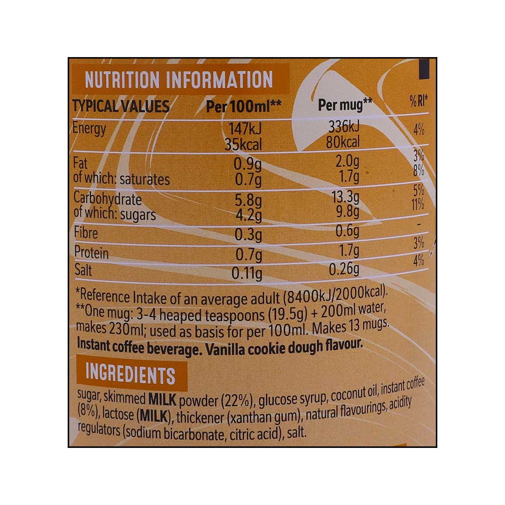 Experience the irresistible flavor of Nescafe Vanilla Cookie Dough Latte Flavour Coffee, a delightful blend that will awaken your taste buds and leave you craving for more. Savor the indulgent combination of vanilla, cookie dough, and rich coffee in every sip.