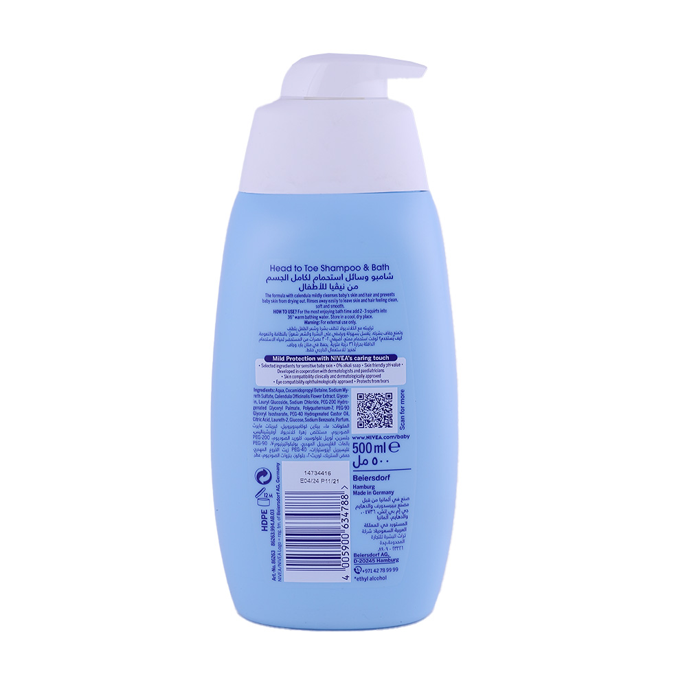 Keep your baby's delicate skin and hair clean and soft with Nivea Baby Shampoo & Bath Head To Toe. This gentle formula is specially designed to provide a soothing bathing experience for your little one.