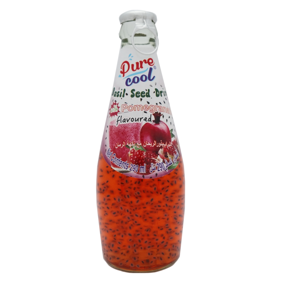 Quench your thirst with our Pure Basil Seed Drink infused with flavorful pomegranate. This delicious and refreshing beverage is perfect for any time of the day.