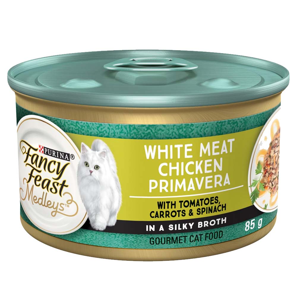 Delight your feline friend with the Purina Fancy Feast Medleys Chicken Primavera In Sauce. Made with tender bites of chicken in a delightful sauce, this gourmet cat food brings a burst of flavors to their mealtime.