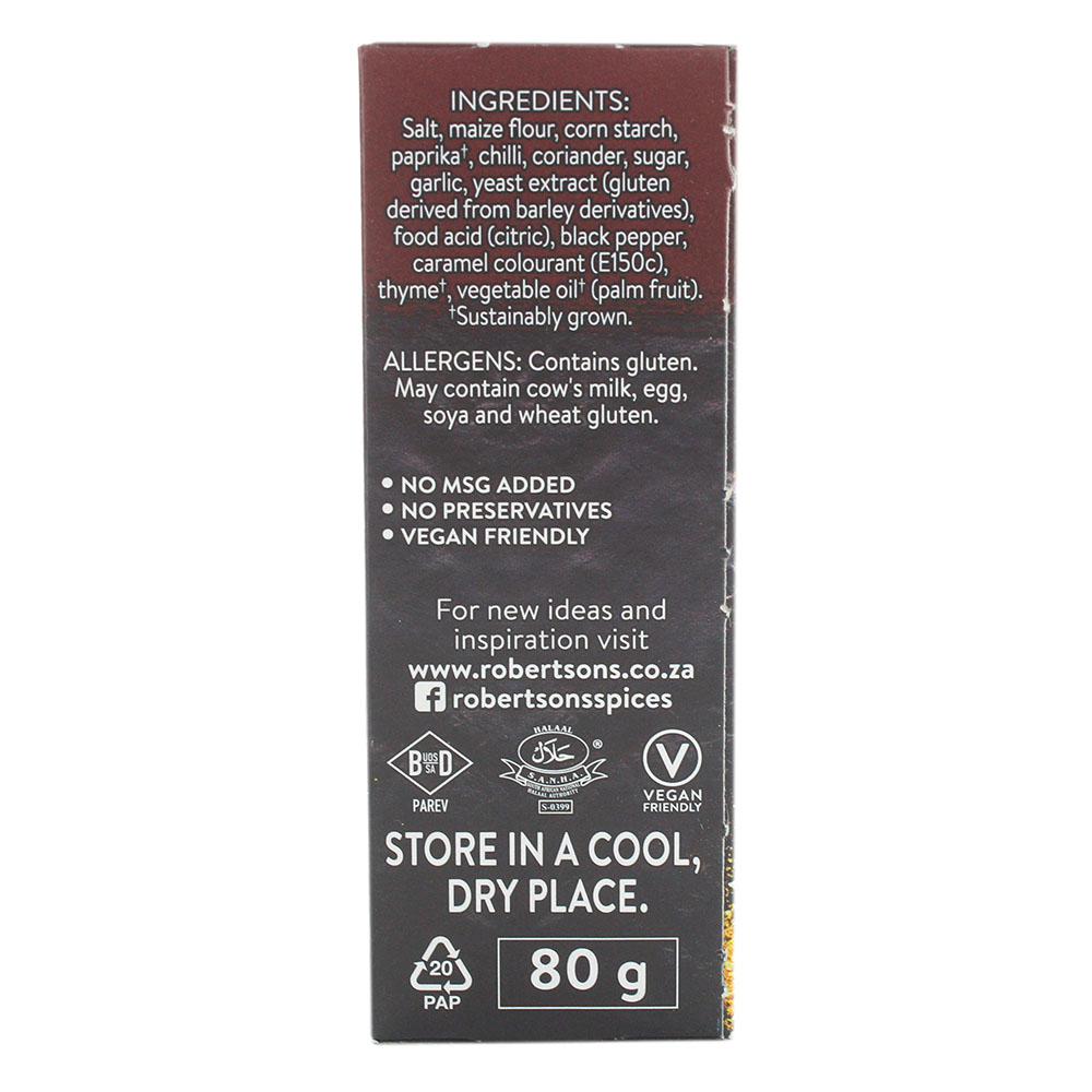 Transform your grilled dishes with Robertsons Spice Shisanyama Refill. This aromatic blend of spices adds a flavorful kick to your BBQ favorites. Conveniently packed in an 80g refill pack, this spice mix is perfect for seasoning your meats and vegetables.