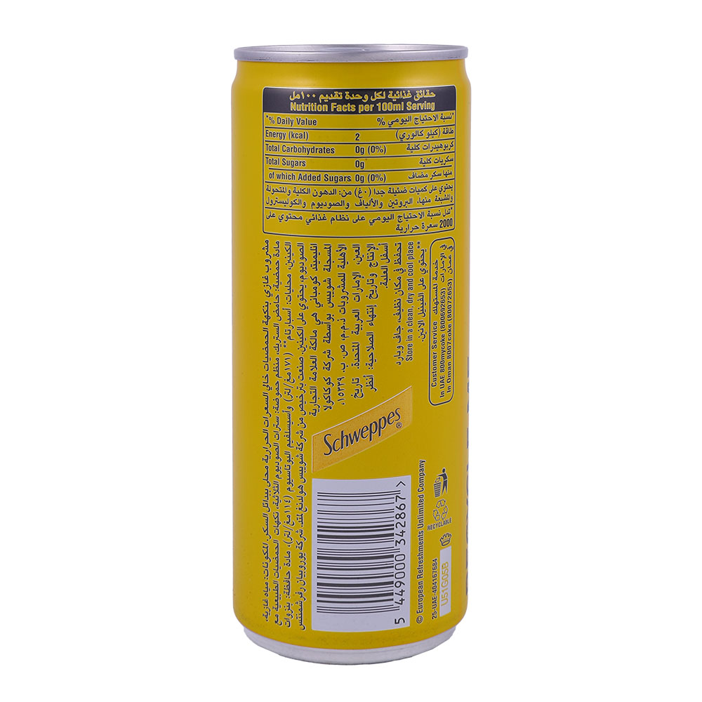 Quench your thirst with Schweppes Zero Sugar Tonic Water, now in a convenient 253ml size. This refreshing drink is a perfect mixer for your favorite cocktails or enjoyed on its own for a guilt-free treat.