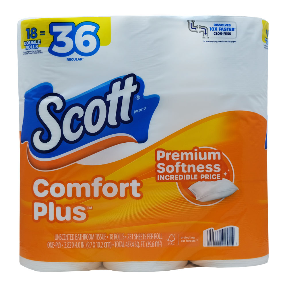 Experience the ultimate comfort with Scott Comfort Plus Bathroom Tissues. Each pack contains 18 rolls of premium quality toilet paper that will elevate your bathroom experience.