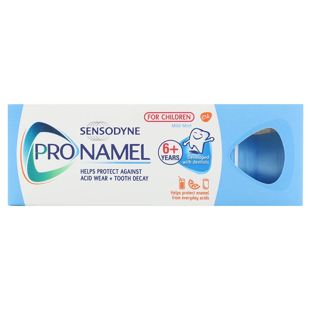 - Trusted Brand: Sensodyne is a trusted brand recommended by dentists worldwide, ensuring that your child's oral health is in good hands. Give your child's smile the protection it deserves with Sensodyne Pronamel For Children Toothpaste Mild Mint 50ml. Start them off on the right path to a lifetime of healthy brushing habits while safeguarding their tooth enamel from acid wear.