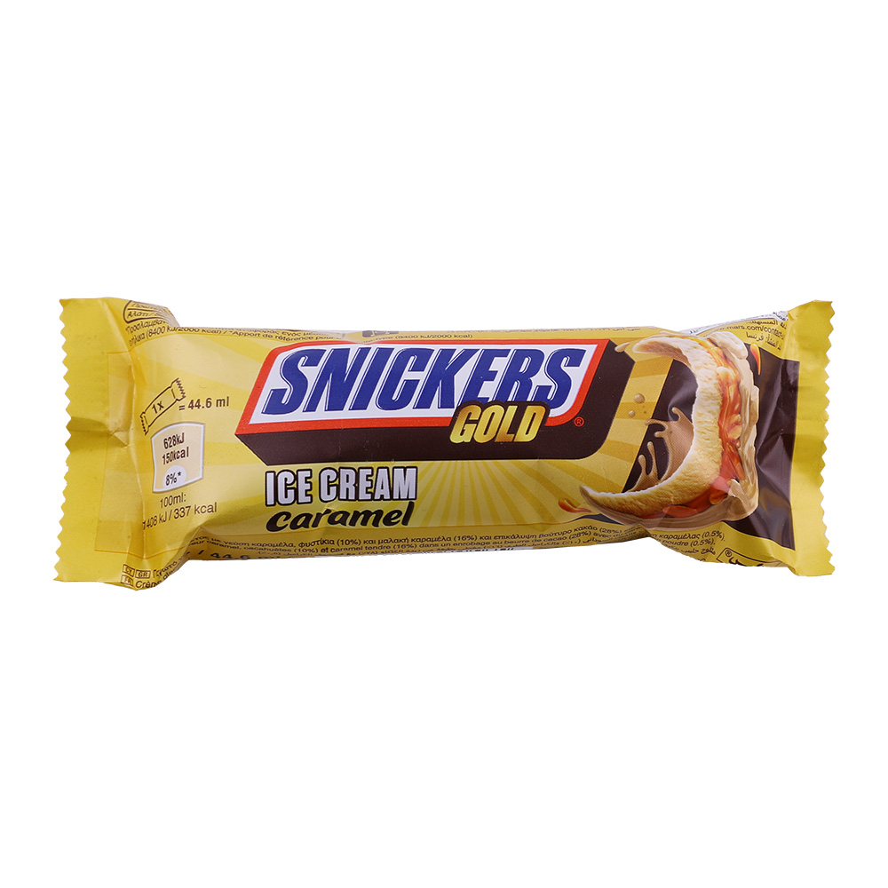 Satisfy your sweet cravings with Snickers Gold Caramel Ice Cream! Indulge in a creamy vanilla ice cream base swirled with gooey caramel and crunchy peanut pieces, all covered in a luscious golden coating. This delightful treat is perfect for any time of day.