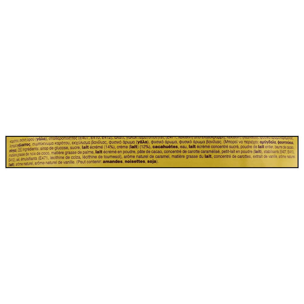 - Creamy vanilla ice cream with caramel swirls and peanut pieces
