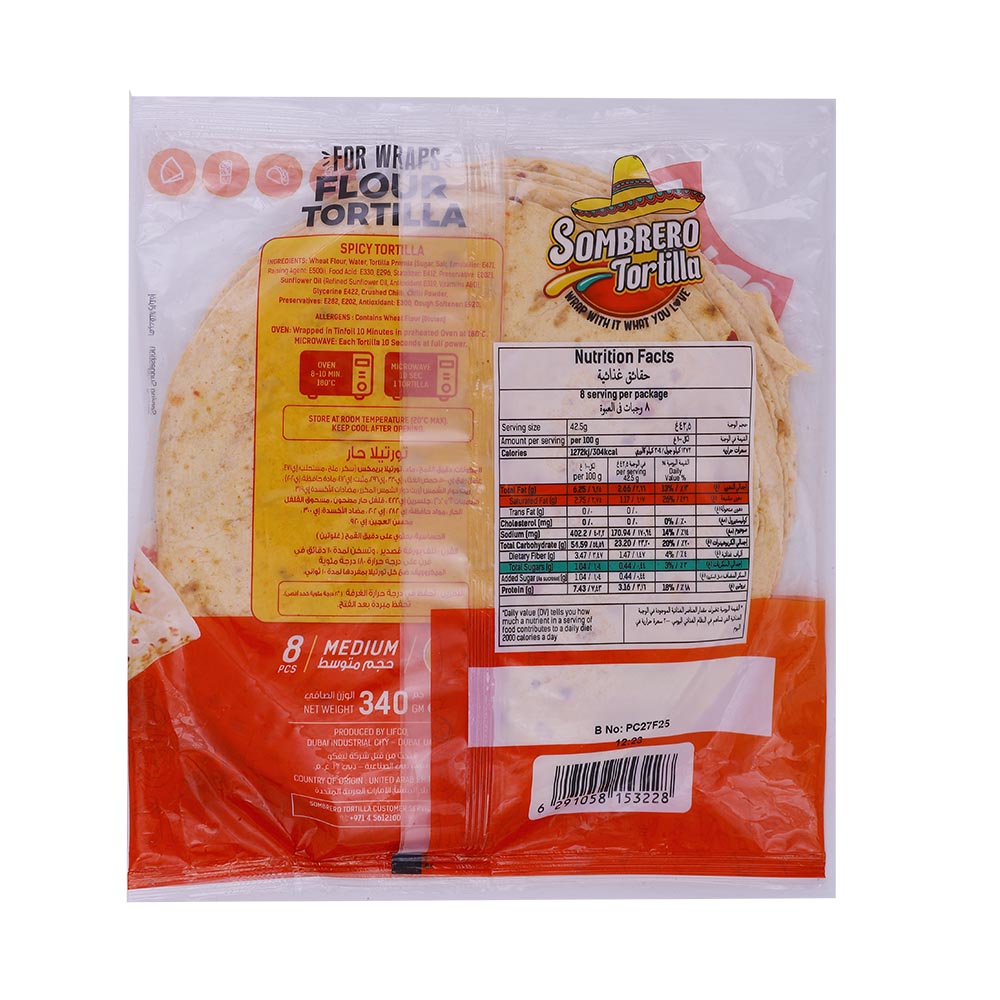 Sombrero Spicy Medium Wheat Flour Tortillas 8s 340g