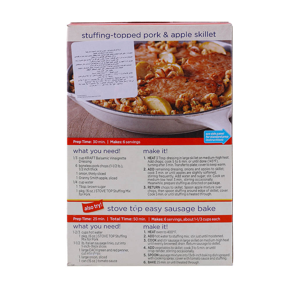 Satisfy your cravings with our Stove Top Pork Stuffing Mix! Made with high-quality ingredients, this 170g pack is perfect for adding a delicious and savory twist to your meals. Whether you're cooking for a special occasion or a simple weeknight dinner, this stuffing mix is sure to impress.