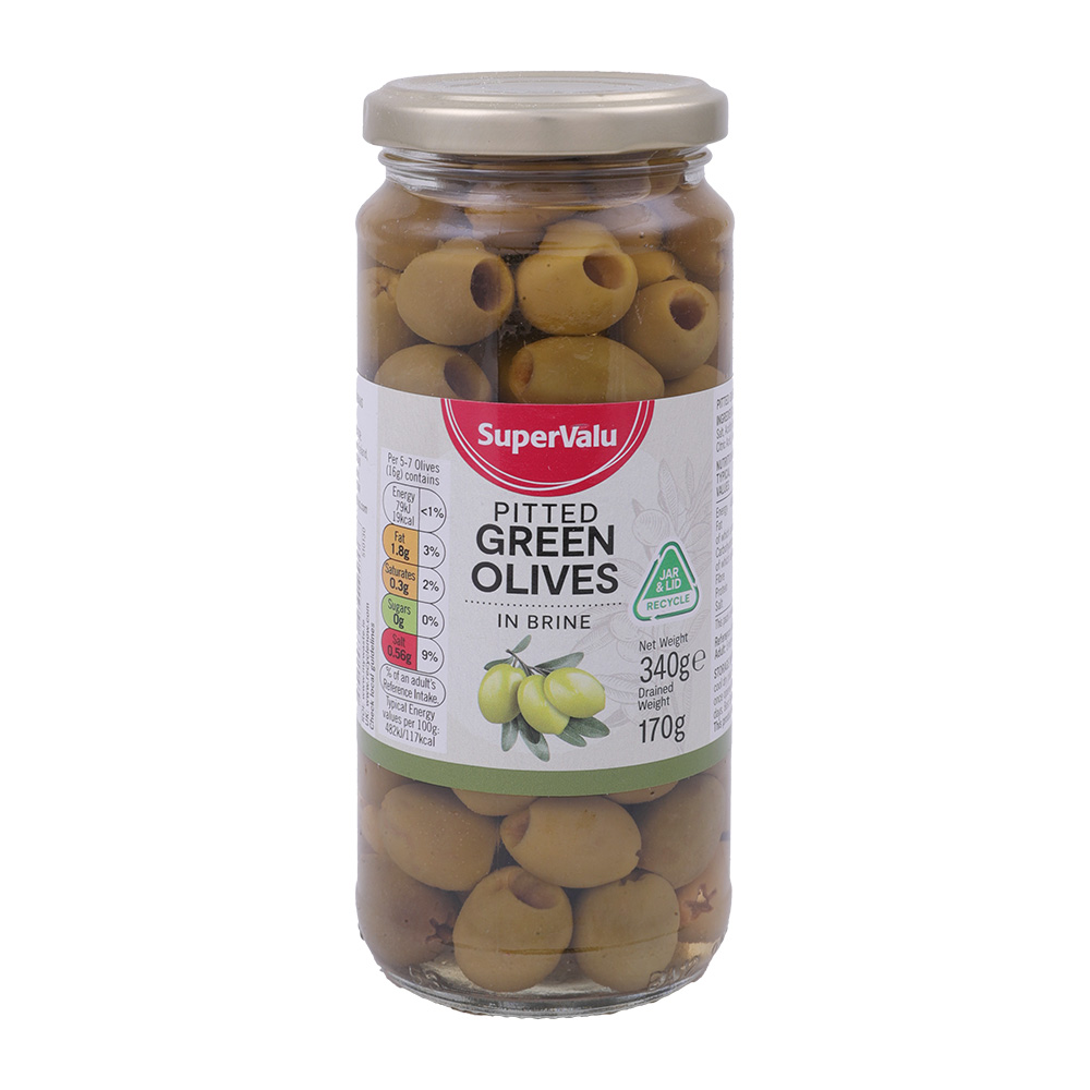 Add a burst of Mediterranean flavor to your meals with Supervalu Pitted Green Olives in Brine. These juicy olives are perfect for snacking or adding to salads, pastas, and pizzas.
