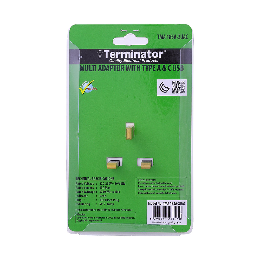 Terminator 2-Way UK Socket With Multi Adaptor TMA 183A-2UAC