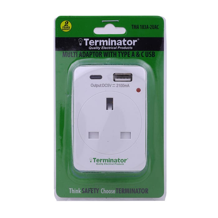 Upgrade your power connection with the Terminator 2 Way UK Socket with Multi Adaptor. This versatile adaptor allows you to plug in multiple devices at once, making it perfect for home or office use.