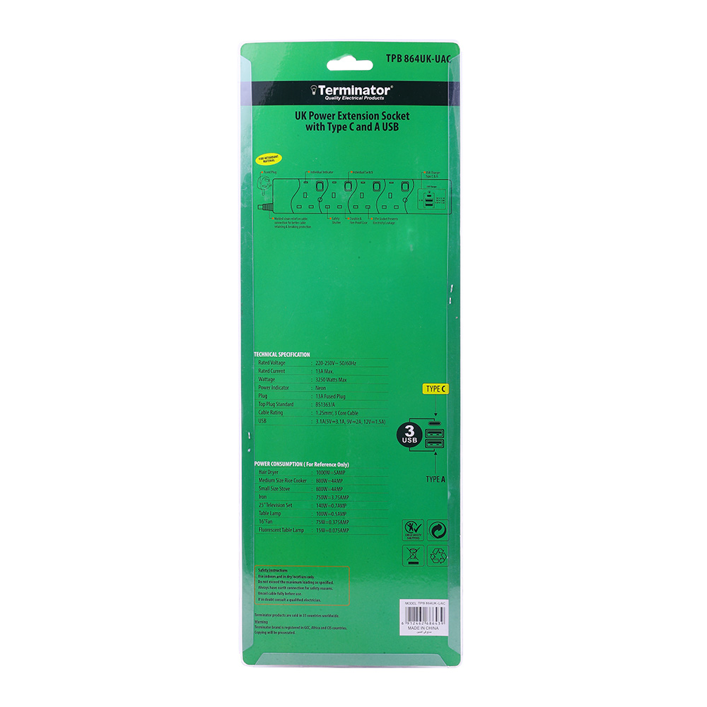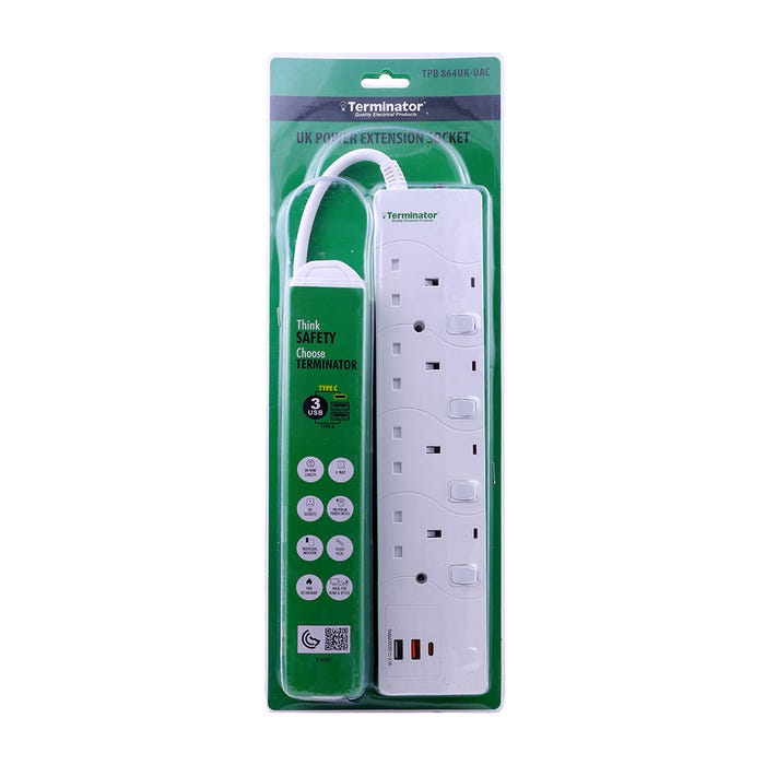 Terminator 4-Way UK Power Extension Socket TPB 864UK-UAC