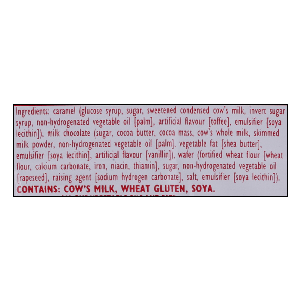 - Indulge in the irresistible combination of crisp wafer layers, creamy caramel, and rich milk chocolate coating.