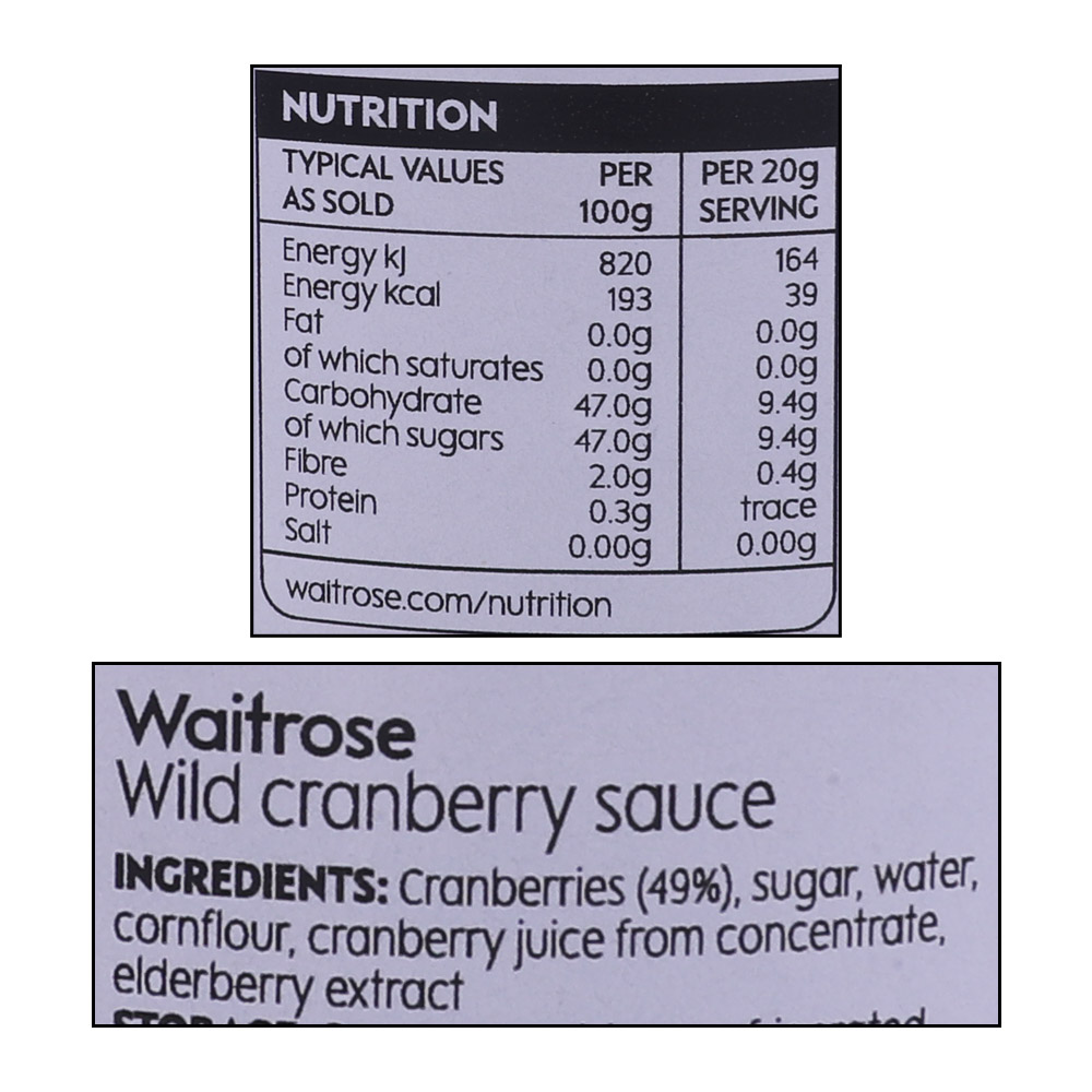 Enhance your holiday feast with Waitrose Wild Cranberry Sauce. Bursting with tangy cranberry goodness, this delectable sauce is the perfect accompaniment to roast turkey or ham.