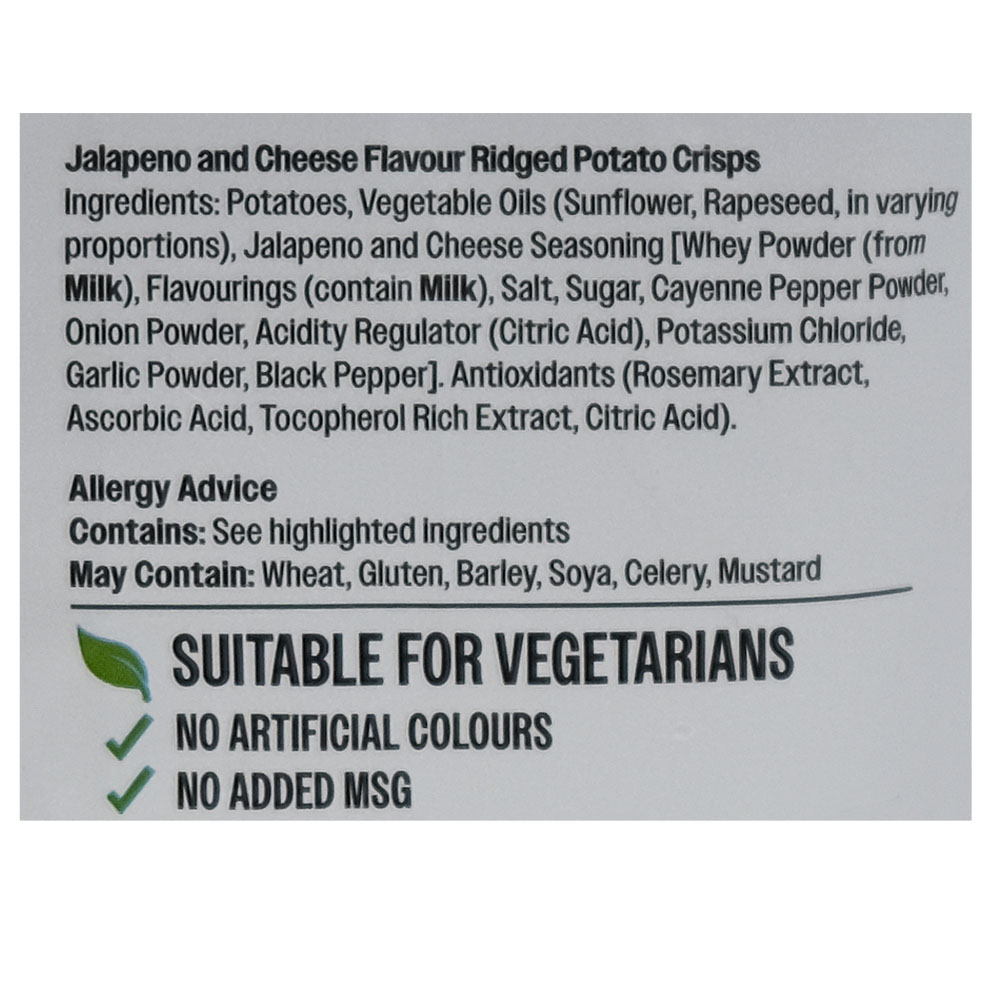 Indulge in the bold and fiery flavor of Walkers Max Jalapeno & Cheese Potato Crisps. Each crunchy chip is bursting with a zesty combination of spicy jalapeno and savory cheese, creating the ultimate snack experience. Perfect for satisfying your craving for a bold and exciting snack.