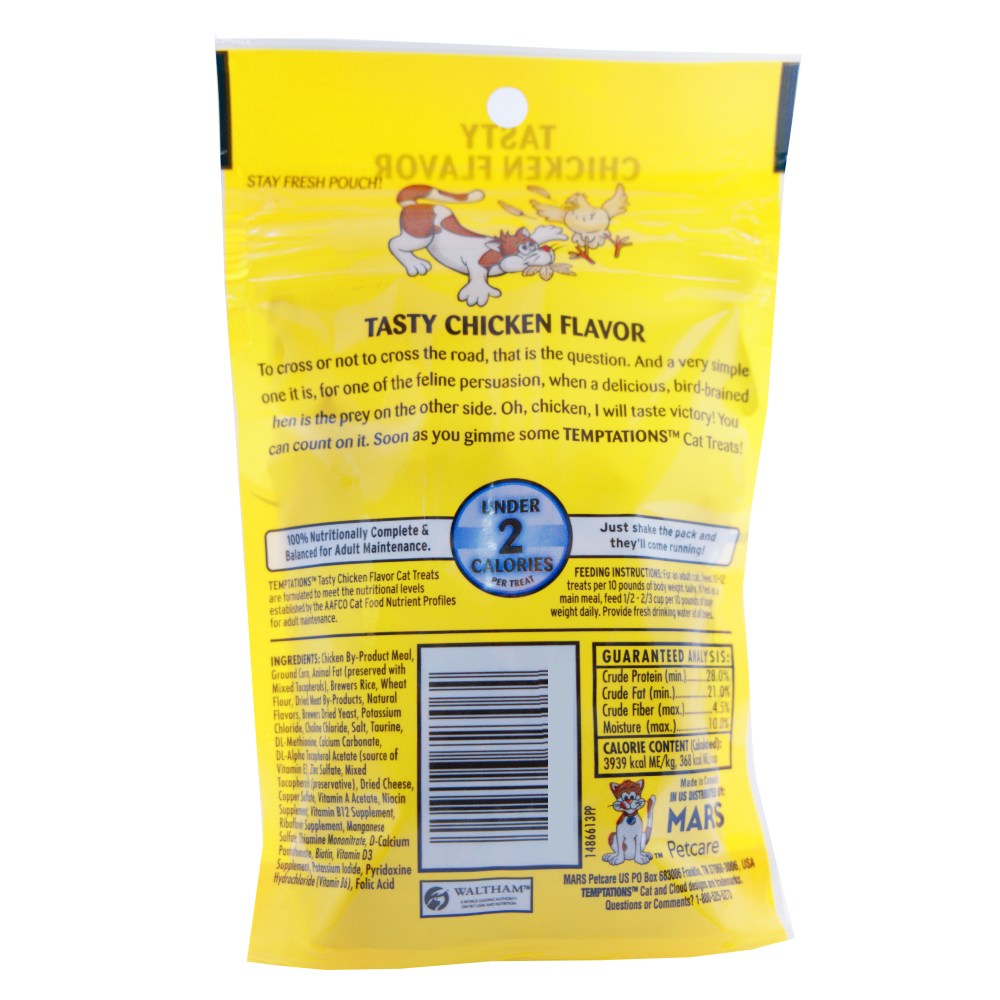 - Provides essential nutrition: Whiskas Temptations are not only tasty, but they also contain essential vitamins and minerals to support your cat's overall health and well-being. With Whiskas Temptations Tender Chicken treats, you can show your cat just how much you care. The delicious chicken flavour and irresistible texture will have your cat purring with delight. Treat your furry friend to a snack they'll love with Whiskas Temptations. Grab a pack today and watch your cat's eyes light up with anticipation!