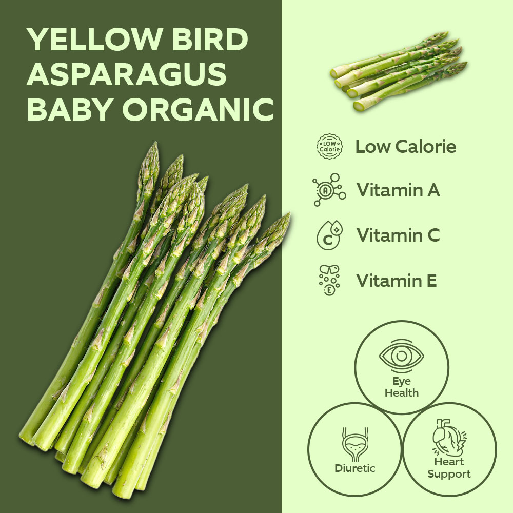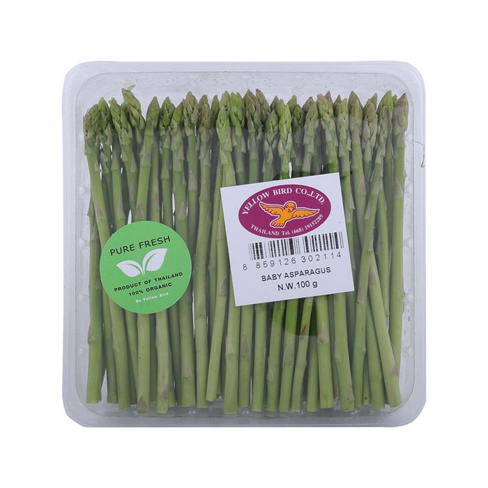 Elevate your dishes with Yellow Bird Asparagus Baby Organic 100g. These tender green spears offer a delightful crunch and fresh taste that will elevate any meal. Packed with nutrients, these organic asparagus make a healthy addition to your diet.
